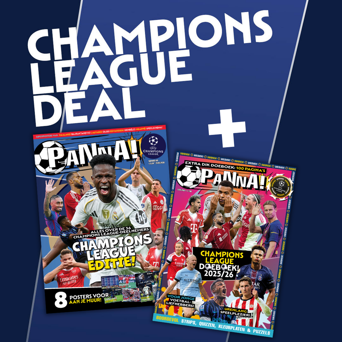 PANNA! Magazine Champions League Deal bevat de volgende items: Nu, speciaal voor jou: de PANNA! Champions League Combi Deal. Alles over het nieuwe Champions League seizoen! Verveel je geen moment met het meest recente Champions League Doeboek en PANNA! 89. Nu extra goedkoop!