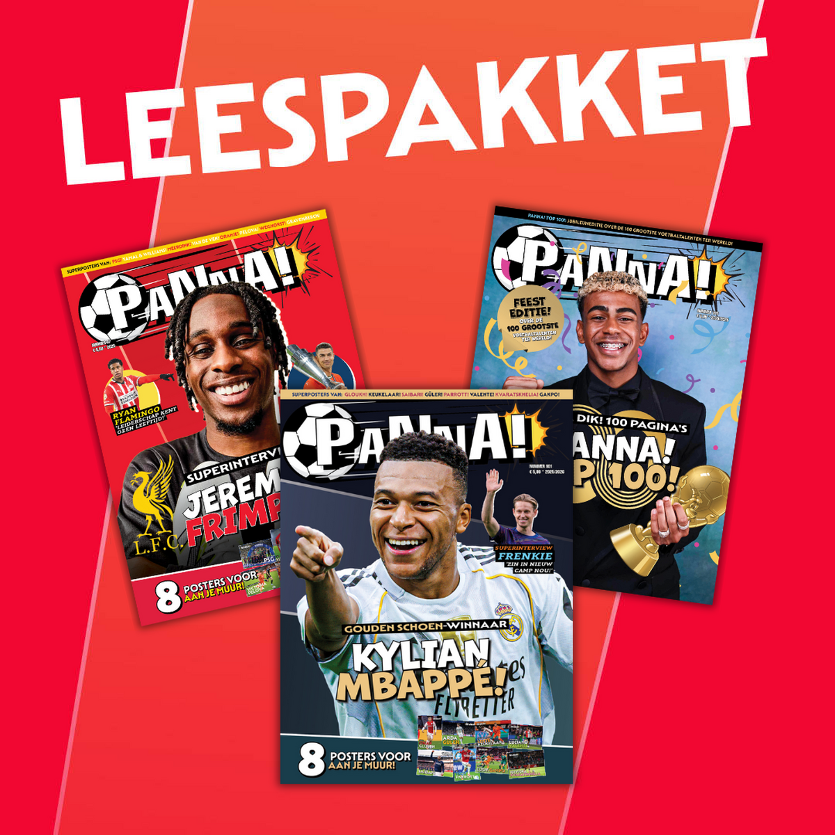 PANNA! Magazine Leespakket bevat de volgende items: Nu, speciaal voor jou: het PANNA! Magazine Leespakket. Verveel je geen moment met de drie nieuwste (reguliere) edities van het leukste voetbalmagazine van Nederland. Je hoeft er de deur niet eens voor uit, want je bestelt jouw pakket natuurlijk gewoon via onze webshop. Dat is pas chill!